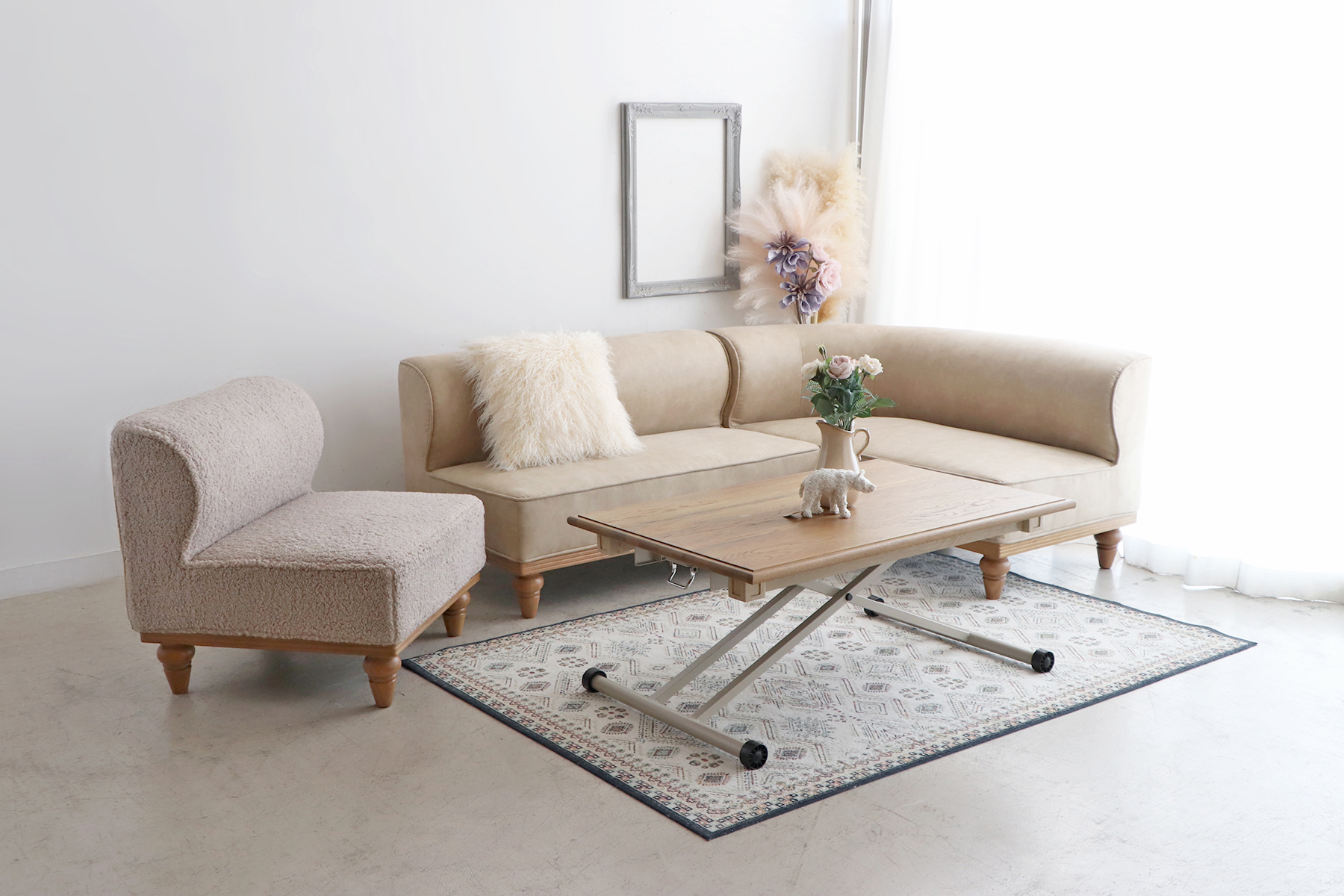 クラシカルな挽き脚のディテールが、日常を少し特別にしてくれるソファセットです