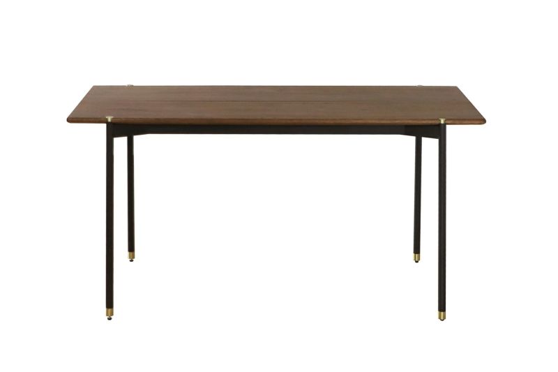 ディープブラウン色の深みのある無垢の天板とスチールとアクセントに真鍮を施した都会的な脚部が特徴的なダイニングテーブルです。