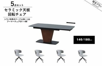 【限定プラン】人気NO.1ダイニング5点セット セラミック×回転チェア シウバBK+アーマーGYのレビューを書く